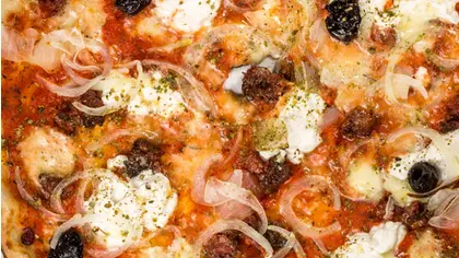 Wide range of artisan pizzas and pizzburgers, a burger made from homemade pizza dough.